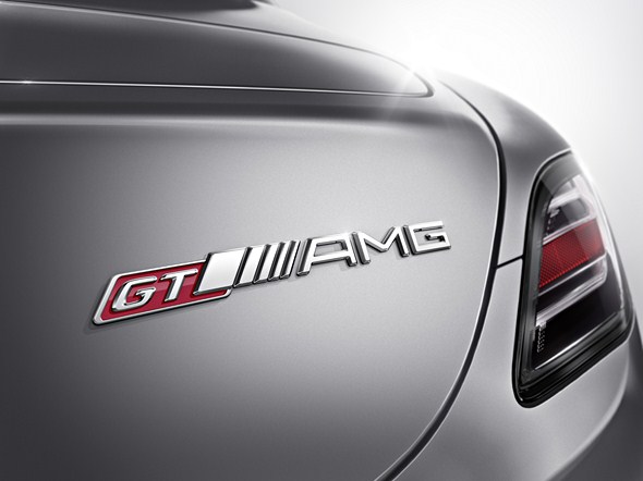 Masculine and decidedly athletic: with darkened headlamps and tail lights as well as red-painted brake callipers, the new SLS AMG GT also features a unique look. The wing-shaped cross fins and the star recess in the radiator grille also retain a high-gloss finish, as do the exterior mirrors and the fins on the bonnet and wings. The AMG logo on the right of the boot lid also features the additional letters “GT”.