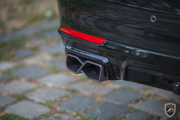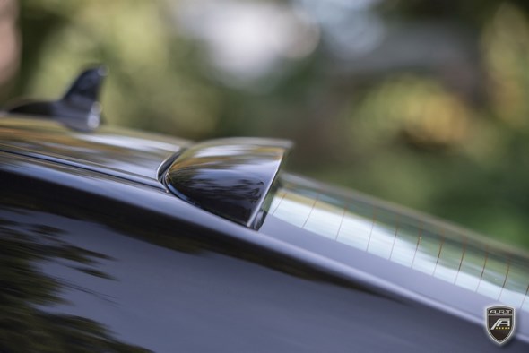 The comprehensive program called “A.R.T. LS” comprises components for refinement of the exterior: a front spoiler with air vents left and right, a set of side skirts, a rear diffuser, two end pipes in GUNPOWDER surface, one rear spoiler for the outer edge of the rear trunk cover and one roof spoiler for the upper edge of the rear window.