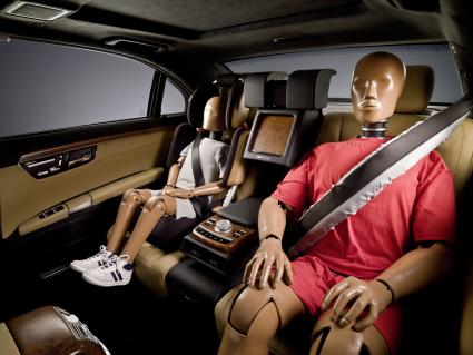 Mercedes-Benz has equipped e.g. the C-class (W203) sports coupé with belt tensioners for all seats or e.g the S-Class W220 on the front seats and outer rear seats as standard, which combine with the belt force limiters and airbags to significantly reduce the strain exerted on the chest region of passengers in the event of an accident.
