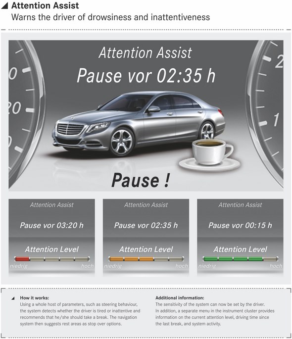 With the newly developed Attention Assist, Mercedes-Benz is continuing its practically-oriented commitment to accident prevention as already demonstrated by e.g. the Electronic Stability Program (ESP) and Brake Assist, which have already led to a measurable improvement in traffic safety.