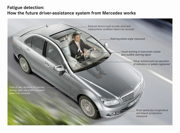 Overtiredness is one of the most frequent accident causes in holiday traffic Mercedes-Benz to introduce Attention Assist into series production in spring 2009 Accident researchers at Mercedes-Benz are acutely aware of the