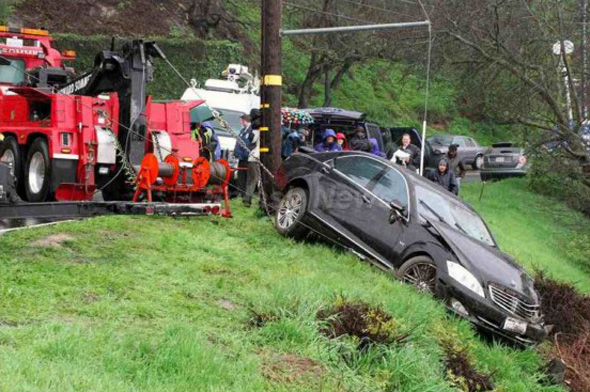 Police got an emergency call around 4 am from an alert system that contacts emergency officials when there is a problem with a vehicle, Officer Wendy Reyes said.At about the same time, the actor called police to say his four-door Mercedes-Benz had been stolen from his home in Sherman Oaks, Officer Bruce Borihanh said. Police and firefighters found the car 300 to 400 feet (90 to 120 meters) down a cliff, upside-down in the dense brush.