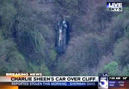 Two and a Half Men star Charlie Sheen’s problems continued Friday, as the actor reported his four-door Mercedes stolen and officials found it — at the bottom of a 100-foot cliff in Sherman Oaks, California.