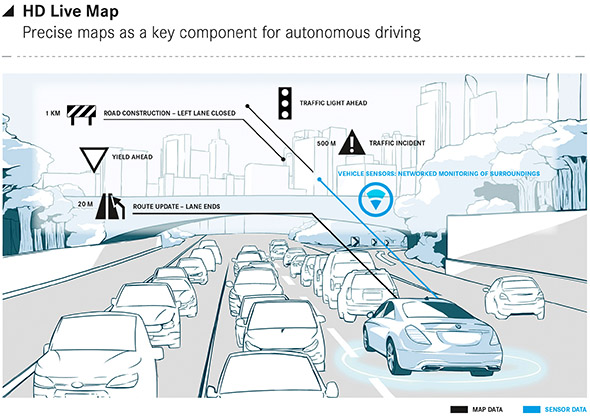 With these efforts both companies are laying the groundwork for upcoming generations of highly automated and autonomous Mercedes‑Benz vehicles* to come to market with the benefits of HD Live Map on board.