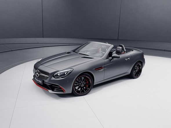 Expressive: Mercedes-AMG SLC 43* RedArt Edition The AMG RedArt Edition for the Mercedes-AMG SLC 43 provides expressive highlights with stylishly placed red elements. The exclusive special paint finishes in designo selenite grey magno and designo iridium silver magno make the SLC top model into quite the eye catcher.