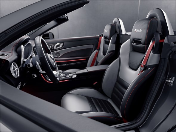 In the AMG Line, the RedArt Edition special model is equipped with 45.7 cm (18-inch) AMG 5-spoke light-alloy wheels, AMG front and rear apron, sports suspension, sports exhaust system (SLC 200 only), instrument cluster with a chequered flag design as well as AMG floor mats.