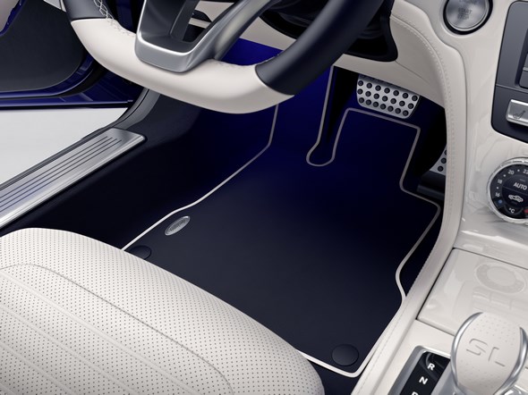 Further matching appointments include the ambient lighting, the 3-spoke two-tone multifunction sports steering wheel in black / porcelain nappa leather, the DIRECT SELECT selector lever in porcelain leather, the designo trim element in piano lacquer champagne white as well as the floor mats with porcelain designo badges and edging.