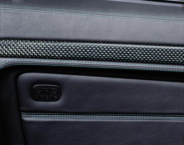 While the dashboard and the door trim are adorned with dazzling, black wood trim, both the front centre console and the folding rear armrest are trimmed in genuine carbon fibre.