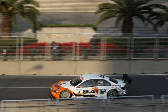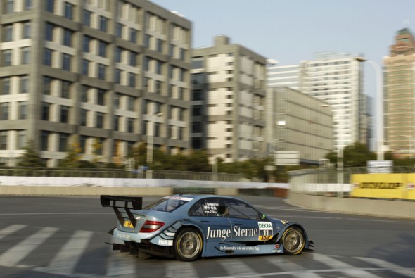 | Paul Di Resta (AMG Mercedes C-Class) will start Sunday’s 11th and final round of the 2010 DTM at Shanghai, China from pole position whilst Gary Paffett (Salzgitter AMG Mercedes C-Class) will start the race second on the grid. Thus, the second and third ranked drivers overall will share the front row for the final race. Championship leader Bruno Spengler (Mercedes-Benz Bank AMG C-Class),however, will start 17th after he had an accident in the first part of qualifying. Jamie Green (Junge Sterne AMG Mercedes C-Class) took third place. In the single-lap qualifying, he also hit the wall and caused another red flag. Therefore, the result of Q3 determined the grid position. Paul Di Resta posted a time of 58.937sec and took his sixth DTM career pole position, his fourth of the year. For Mercedes-Benz, it is the 105th pole position in 331 DTM races since 1988. Qualifying, part 1: After eight minutes, the qualifying was red-flagged after Bruno Spengler had hit the wall. He made it back to the pits. Fastest C-Class driver at this moment was Ralf Schumacher with 1m00.022 in second place. According to the rules, all drivers started in Q2. Qualifying, part 2: Again a red flag; this time, due to an accident of Darryl O’Young (Audi). Fastest C-Class driver at this point was Paul Di Resta with a 59.455sec in third place. The red flag meant that all drivers – with the exception of O’Young – were allowed to start in Q3. This included Bruno Spengler after the HWA mechanics had changed his broken front right suspension and undertray in record time. Moreover, they put Ralf Schumacher’s Laureus reserve bonnet. Qualifying, part 3: David Coulthard (Deutsche Post AMG Mercedes C-Class) took sixth place with a 59.322sec, his best ever DTM grid position. Ralf Schumacher (Laureus AMG Mercedes C-Class) came home 11th with a 59.678sec ahead of Susie Stoddart (TV Spielfilm AMG Mercedes C-Class). After an interim best lap time , she hit the wall and ended up 12th with a 59.750sec. Maro Engel (GQ AMG Mercedes C-Class) finished 16th with a 1m00.114 after his team had repaired his C-Class following an accident on Friday. CongFu Cheng (stern AMG Mercedes C-Class) came home 16th with a 1m00.381 and Bruno Spengler was 17th (1m01.010).  Paul Di Resta (AMG Mercedes C-Class) pole position (58.937sec): “This morning, I was fastest in free practice; this afternoon I took pole position – a great result. Now I have the best chance to win the race and the title. However, qualifying showed that a lot of things can happen on this track.” Gary Paffett (Salzgitter AMG Mercedes C-Class) second (59.045sec): “I thank my team; my C-Class was top class again today. Pole was possible, but also from second on the grid everything will be possible tomorrow. I want to win and keep my championship hopes alive.” Jamie Green (Junge Sterne AMG Mercedes C-Class) third (59.218sec): “I am happy that I made it to the single-lap qualifying. Unfortunately, the track offered not much grip and so I hit the tyre barrier. But third on the grid is a good basis for Sunday’s race.” David Coulthard (Deutsche Post AMG Mercedes C-Class) sixth (59.322sec): “What a crazy qualifying. On a street circuit, it is even more important to find a clear lap to be fast and I managed it. Sixth place is a great result for me and tomorrow I want to score my first DTM points.” Ralf Schumacher (Laureus AMG Mercedes C-Class) 11th (59.6778sec): “The track is a real challenge and very demanding for the drivers. Particularly the white lines are very slippery and I am not surprised about what happened.” Susie Stoddart (TV-Spielfilm AMG Mercedes C-Class) 12th (59.750sec): “My car ran very well and I gave it my all. It’s a shame, that I hit the wall, but 12th place is OK for me.” Maro Engel (GQ AMG Mercedes C-Class) 15th (1m00.114): “Every time I tried to set a fast lap I got stuck in traffic. When I tried to open a gap ahead of me, my tyres cooled down. It’s a shame – I wanted to qualify in the top six. I thank my mechanics who repaired my severely damaged car after yesterday’s accident.”  CongFu Cheng (stern AMG Mercedes C-Class) 17th (1m00.381): “My car’s balance was not perfect and we have to work hard until tomorrow. I hope for a good result in my home race.” Bruno Spengler (Mercedes-Benz Bank AMG C-Class) 17th (1m01.010): “I tried to brake a little later than in practice, but then I was just a little bit too late. This was clearly my mistake and I apologize to my team, because my guys had a lot of work this weekend. They made it possible that I could do a few laps in Q3; however, after the quick repairs the steering didn’t work correctly so I was not able to move up.” Norbert Haug, Vice President Mercedes-Benz Motorsport: “The circuit in Shanghai is a big challenge for drivers and cars – which has been demonstrated today by many wall contacts and interruptions. Paul Di Resta, Gary Paffett and Jamie Green were the best to manage this task and will therefore start from first to third places on the grid. It’s a shame for Bruno who hit the wall and has to start 17th tomorrow.” |