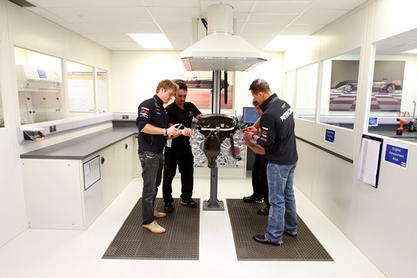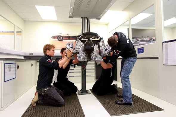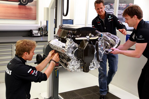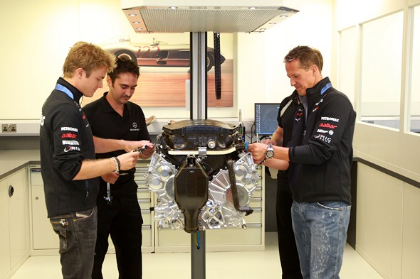 The 2011 engine is codenamed FO108Y and is designed and developed by Mercedes-Benz HighPerformanceEngines in Brixworth, UK. It has a maximum capacity of 2.4 litres, while its architecture is fixed at eight cylinders in a ‘V’ configuration, with a bank angle of 90 degrees. The engine’s minimum weight is fixed by regulation at 95 kg, and it develops over 750 bhp.