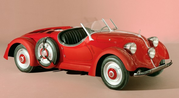 In 1934 the four-seater Mercedes-Benz 130 (W 23), the first series-produced car of the brand with a rear-mounted engine, appeared. In that same year the two-seater 150 model with mid-engine was built as a so-called Sports Saloon – today we would call this a coupé or sports coupé – especially for the “2000 Kilometres Across Germany” long-distance rally. In 1936 the four-seater Mercedes-Benz 170 H (W 28), with rear-mounted engine, debuted as the successor to the 130.