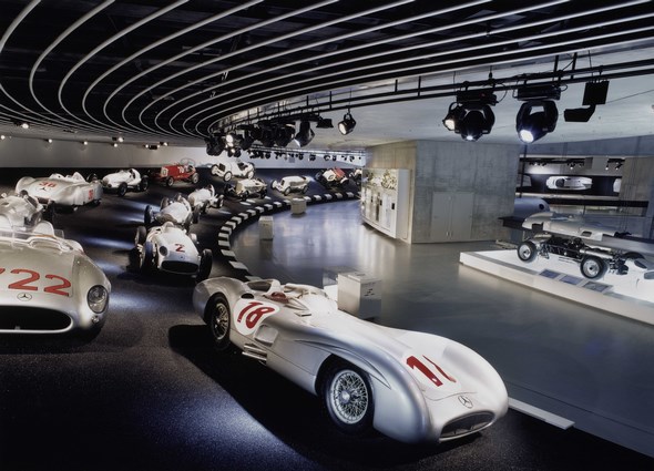 The multiple award-winning architecture by Dutch architectural practice UNStudio is perfectly complemented by the exhibition concept developed by the Stuttgart-based museum designer HG Merz: on nine levels, paths wind in the shape of a double helix along a time axis stretching from the invention of the motor car to the present day.