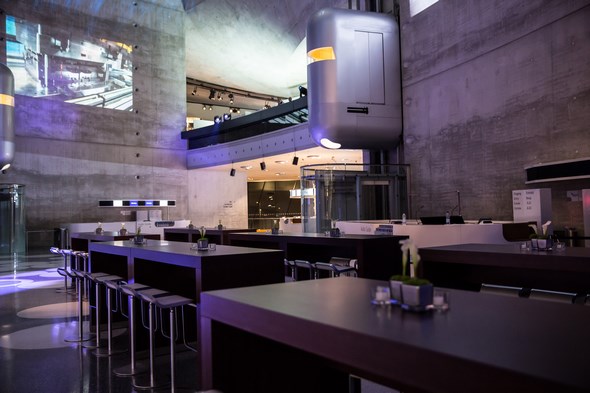 Level 8 of the Mercedes-Benz Museum provides the ideal setting for top-class events. Above the roofs of the city, the 280 square metres of the Casino offer a venue for exclusive events with between 90 and 200 guests, who are free to gaze at the surroundings or at the exhibition, including the world’s first and oldest Mercedes.