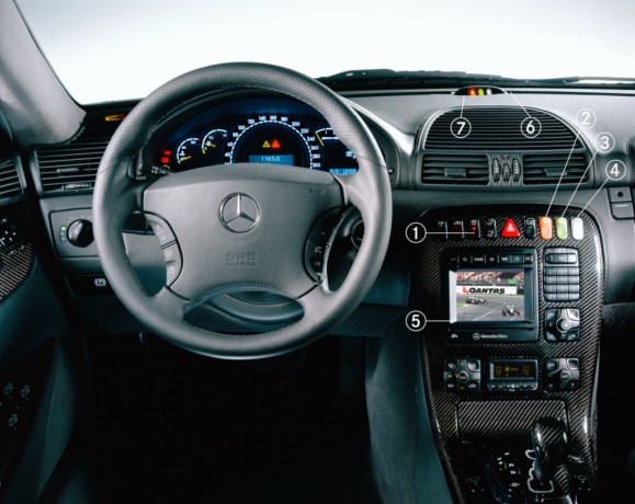 In addition to the “F1 Limited Edition” lettering on the front fenders, the interior of this exclusive Mercedes coupe also features cues from the motor racing activities of Mercedes-Benz. Numerous special characteristics distinguish the CL 55 AMG “F1 Limited Edition”, which is available only in brilliant silver metallic, from its series-production counterpart: