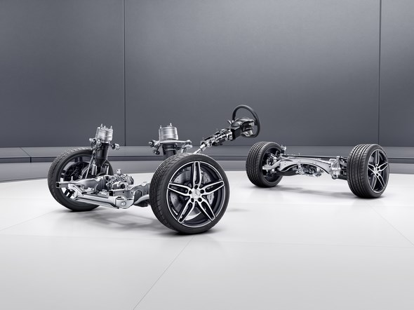| Front axle | AMG RIDE CONTROL sports suspension based on AIR BODY CONTROL with three-link axle, multi-chamber air bellows, twin-tube gas-filled shock absorbers, and adaptive adjustable damping | |