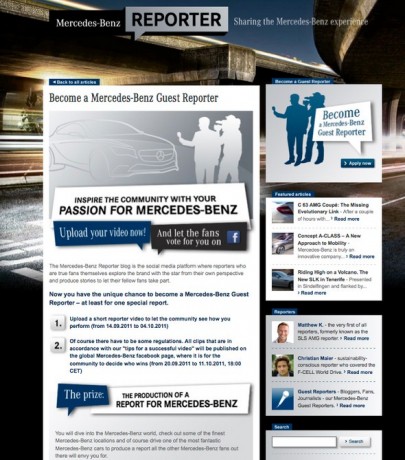 - Large-scale online casting on Facebook and Mercedes-Benz Reporter Blog