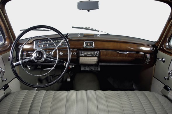 There was a marked improvement in the brakes. The 220 a received ribbed brake drums with “turbo-cooling” at all four wheels, ventilation ducts in the wheel rims and decorative wheel boss caps ensured a sufficient supply of cool air.