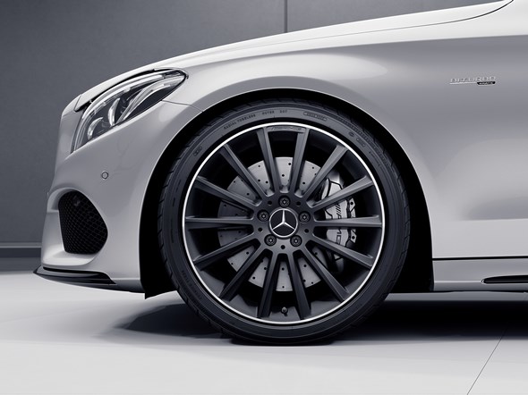 On the Night Edition for the Mercedes-AMG C 43 4MATIC Coupé and Cabriolet black details add fine flourishes. So for the first time the cabriolet too is available with black exterior details.