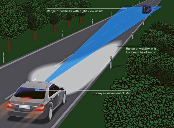[adsense]Night view assist, which is celebrating its European premiere in the new S-Class, is a further milestone in this area of passenger car technology.