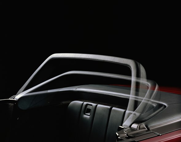 Two years later the four-door cabriolet celebrated its comeback after 20 years. In September 1991 it arrived on the market as a further body variant in the model series 124, initially as the 300 CE-24 Cabriolet. Enormous design effort went into preparing the two-door variant based on the coupé for its role as an open-top car – around 1000 parts had to be redesigned just to give greater rigidity to the bodywork. All in all each cabriolet needed more than 130 kilograms of additional sheet metal panel to statically compensate for the missing 28 kilograms of the coupé roof. A linear roll-over bar located behind the rear seats was specifically developed for the cabriolet – this extended almost vertically upwards within 0.3 seconds if an overturn was likely. But it could also be extended at the touch of a button at any time to act as a head restraint for passengers in the rear.