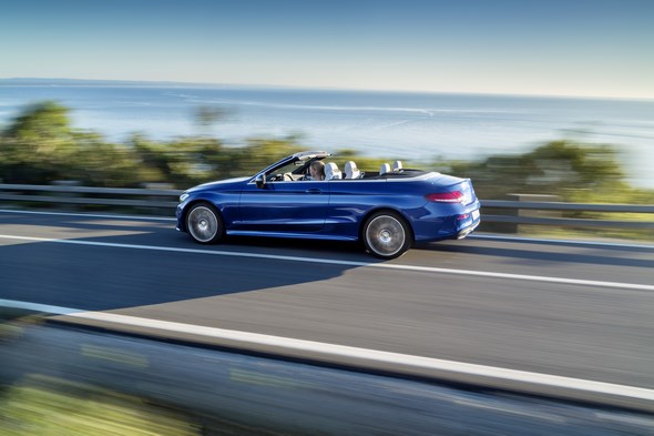 The youngest member of the open-air family is the first cabriolet on the basis of the C-Class. It thus rounds off the cabriolet palette with a classic fabric top. The new cabriolet’s design interprets modern luxury with a youthful touch. Featuring plenty of high-quality details, its distinctive character is most apparent when the top is down. The cabriolet is optionally available with the automatic draught-stop system AIRCAP and neck-level heating system AIRSCARF – for exceptional comfort during open-top driving 365 days a year.