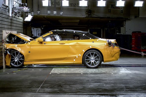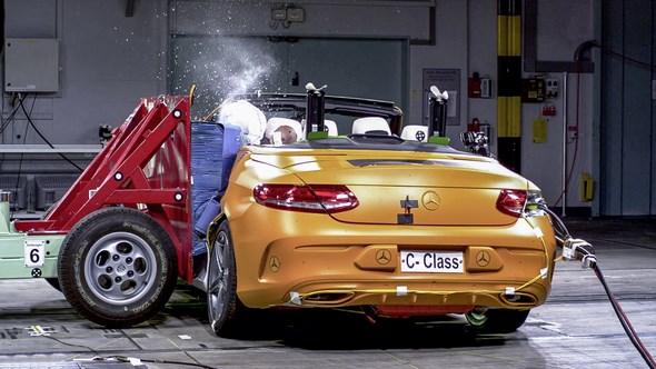 These include not just the approximately 40 different impact configurations designated for ratings and worldwide vehicle registration, but also particularly exacting crash tests such as the roof-drop test that are also carried out by the company for cabriolets and roadsters.