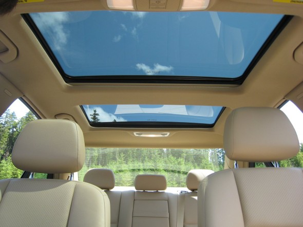 A large dual-panel glass Panorama Sunroof provides both front- and rear-seat passengers with a view of the sky.The front panel can either tilt open or slide over the rear panel to open completely. And if you feel like limiting the amount of sunlight coming in, independently operated interior power sunshades cover both glass roof panels.