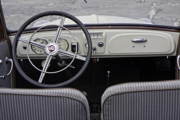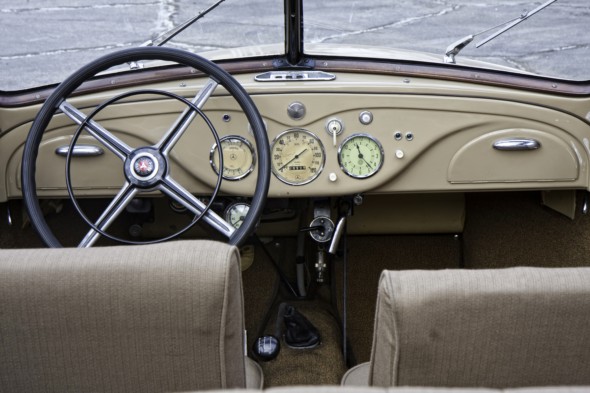 The front bonnet housed the horizontally stowed spare wheel along with tools and smaller travel accessories. One exceptional feature for the time and vehicle category was the car’s standard-fit heating system.