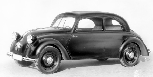 In 1934 another brochure advertised the vehicle’s merits: “This model is a quality utility vehicle suitable for a broad circle of users; thanks to its use of patented swing axles front and rear, its low-slung design, rear-positioned engine, broad track and favourable weight distribution, it boasts incomparable handling characteristics.”
