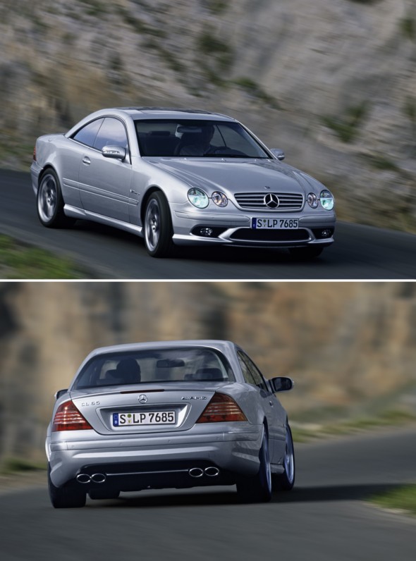 CL-Class models by the dynamic AMG bodystyling, which comes as standard. The front end is characterised by the new-design AMG front apron, with larger openings for the intercooler. The side view reveals AMG side skirts, “V8 KOMPRESSOR” lettering on the front wings and 18-inch AMG light-alloy wheels in a new twin-spoke design which are shod with mixed-size tyres. Both models feature 8.5″-wide light-alloy wheels fitted with 245/45 R 18 tyres at the front, and 9″-wide wheels at the rear with tyres measuring 265/40 R 18. The twin-tract AMG sports exhaust with two sets of chromed twin tailpipes and a distinctive AMG rear apron – with a particularly sporty diffusor on the CL 55 AMG – lend a dynamic touch to the rear.