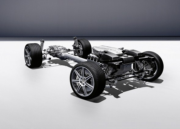 The AMG 6.3-litre V8 engine delivers its abundant power to the rear axle via an ultra-light carbon-fibre driveshaft – similar to the setup used in the DTM