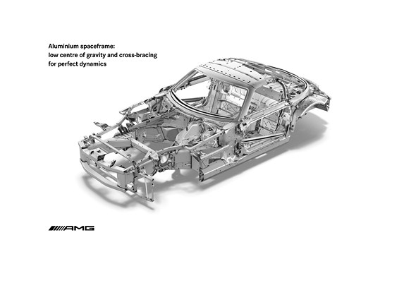 Specifically reinforced aluminium spaceframe, low DIN kerb weight
