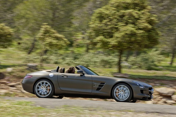 The open-top SLS AMG accelerates from zero to 100 km/h in 3.8 seconds, and the top speed is 317 km/h (electronically limited) – which means that the Roadster has a performance comparable to the gull-wing variant.