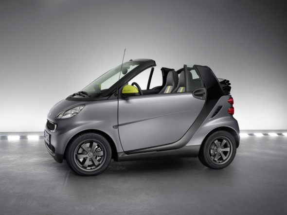 The new smart fortwo edition greystyle is based on the passion coupé or the passion cabrio with a petrol engine and a choice of a 52 kW (71 hp) engine with micro hybrid drive technology or a 62 kW (84 hp) engine. Among other features the passion equipment line comes with the softouch automatic gear programme, electric windows, air conditioning with automatic temperature control, and a panoramic roof with sunblind.