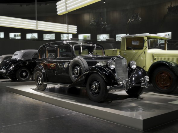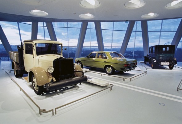 Each Legend room illustrates a particular era by developing a central theme. These include the invention of the independent, petrol-driven road vehicle, the origin of the Mercedes brand, the development of the supercharger and diesel engine, the Gullwing and semi-forward control trucks of the 1950s, the increasing importance of safety and environmental protection, the brand’s global presence, and in the final Legend room the complete history of racing and record-breaking cars.