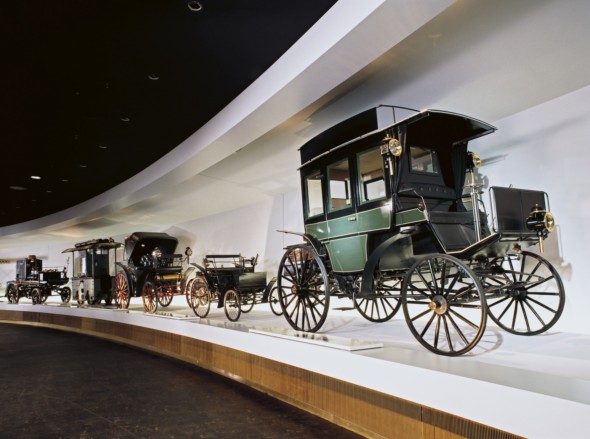 During a two-hour tour of the exhibition, visitors experience a unique journey through automotive history. Transported by lift to the uppermost level of the museum, the visitor arrives back in the year 1886, where two museum tours gradually spiral their way down through the extensive collection and back to the museum exit.
