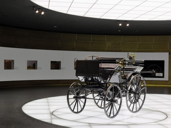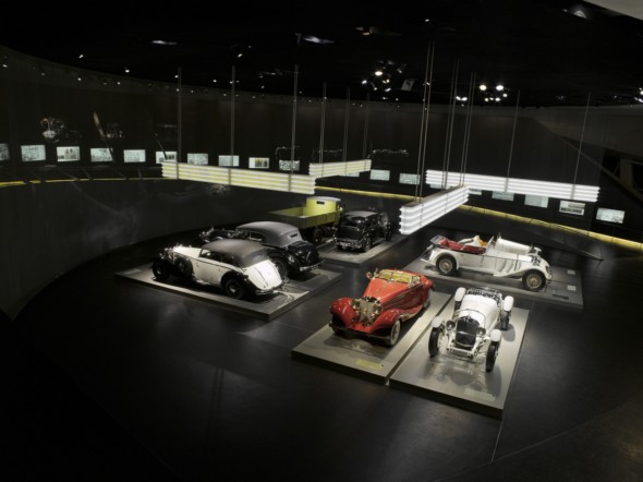 The exhibition at the Mercedes-Benz Museum is divided into Legend rooms and Collection rooms. The Legend rooms narrate the history of the Mercedes-Benz brand, dividing it into themes and epochs. The rooms are ordered chronologically and the exhibition is fully through-designed.