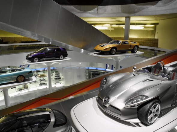 “The ‘Fascination of Technology’ section features five research vehicles from Mercedes-Benz which can also be seen from the atrium. They illustrate the manner in which the various strands of technological development are interwoven and bring to life the new technologies which are ultimately incorporated into production models.”