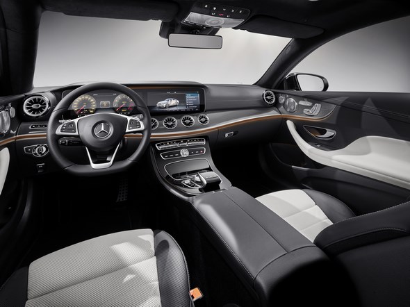 In addition the E-Class Coupé features all the intelligent innovations of the E-Class Saloon. These include e.g. the Widescreen Cockpit, touch controls on the steering wheel, comprehensive smartphone integration, the extended Driving Assistance package, the Remote Parking Pilot, Car-to-X communication, the AIR BODY CONTROL suspension and MULTIBEAM LED headlamps.