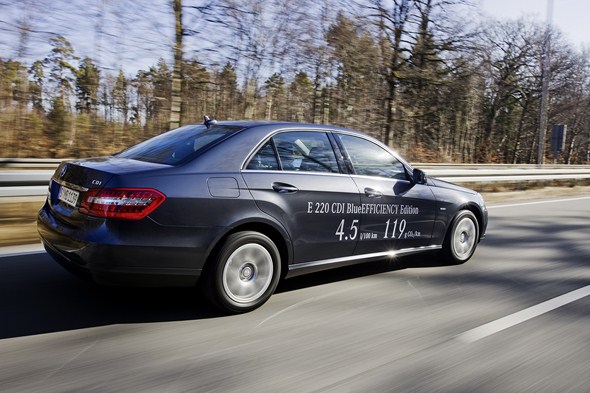 The E 220 CDI BlueEFFICIENCY Edition is quite simply one of the most economical cars in its segment. Thanks to a bundle of efficiency-boosting measures, including an Aerodynamics package, electric power steering (EPS), a longer final-drive ratio and size 205/55 R 16 tyres with low rolling resistance, this model emits just 119 g CO2/km – that’s 10 grams, or nearly eight percent, less than before.
