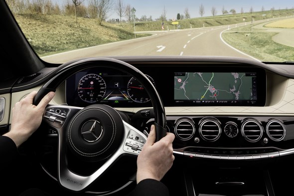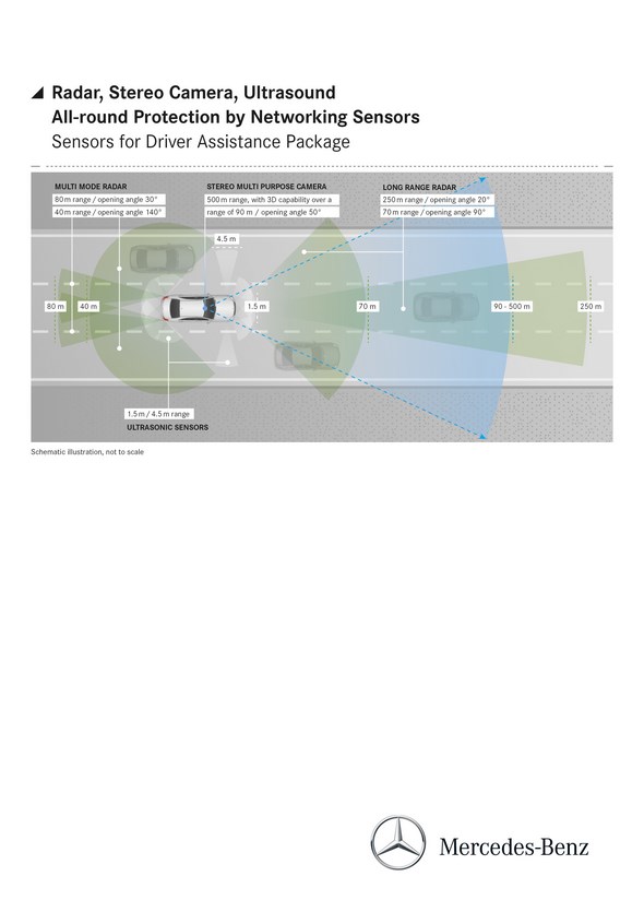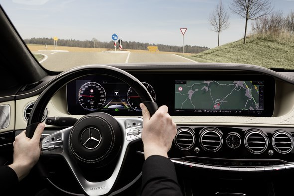 Thanks to enhanced camera and radar systems, the new S-Class has an even better view of the surrounding traffic: In addition, for the first time it makes use of map and navigation data to calculate driving behaviour.