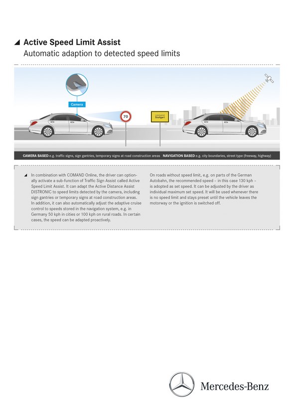 This means that DISTRONIC Active Proximity Assist is able to assist the driver in many situations based on the route, and conveniently adjust the vehicle speed.