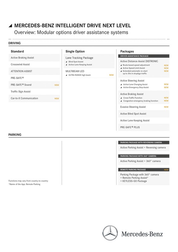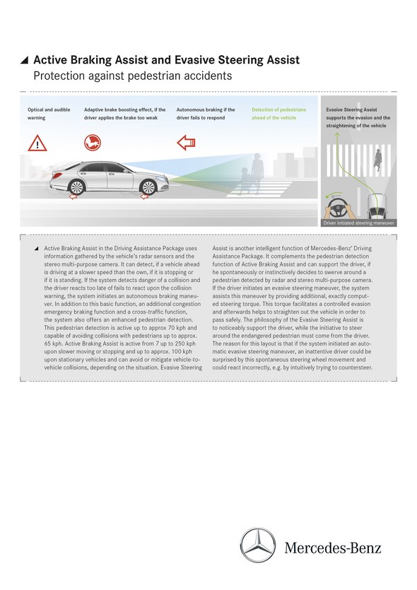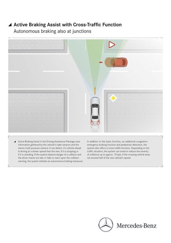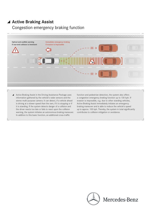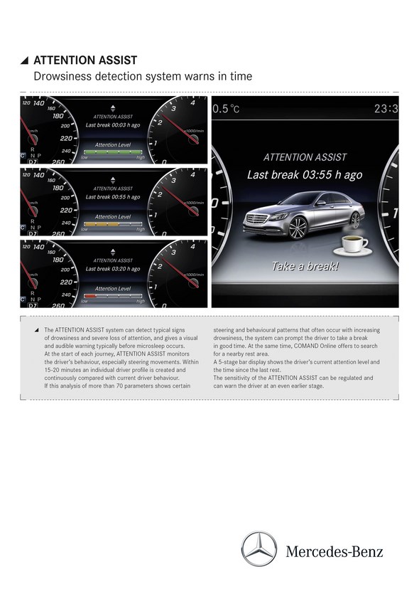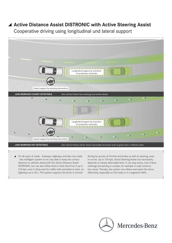The top-of-the-range model of Mercedes-Benz takes another big step towards autonomous driving and elevates Intelligent Drive to the next level. DISTRONIC Active Proximity Control and Active Steer Assist now provide even more comfortable support for the driver to keep a safe distance and steer. The speed is now adjusted automatically ahead of curves or junctions.