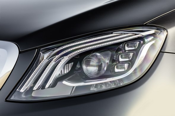 In 2013, the S-Class became the first automobile to use exclusively LEDs as light sources. The Intelligent Light System is now optionally available with MULTIBEAM LED headlamps and ULTRA RANGE main beams. The ULTRA RANGE main beams produce the maximum light intensity permitted by law, which results in the brightness of the main beams remaining above the reference value of 1 lux over a distance of more than 650 metres.