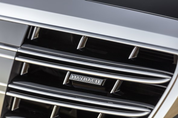 The upgraded front with extensive chrome trim underscores the exceptional status of the Mercedes-Maybach. Also new is the Maybach logotype between the louvres of the radiator grille.