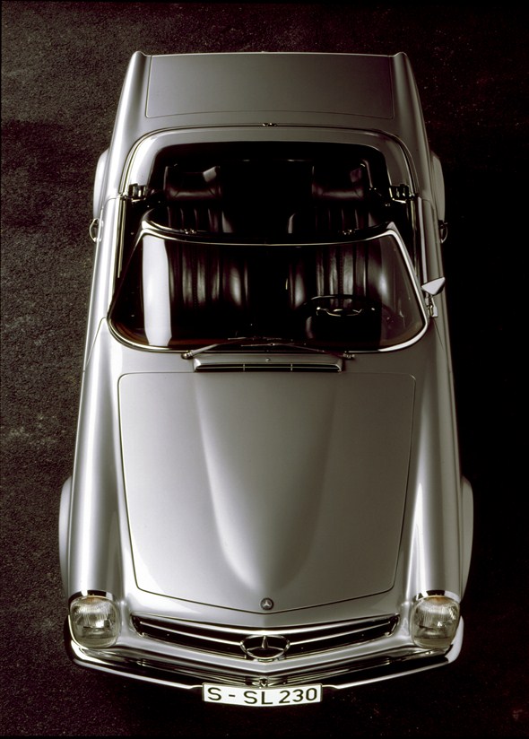 At the 1963 Geneva Motor Show, Mercedes-Benz presented the new 230 SL – internal series designation W 113. It was designed as a comfortable high-performance two-seater touring car and replaced the 190 SL and 300 SL models. Three versions were available: an open-top car with a folding soft top, an open-top version with hardtop, and finally the hardtop coupé.