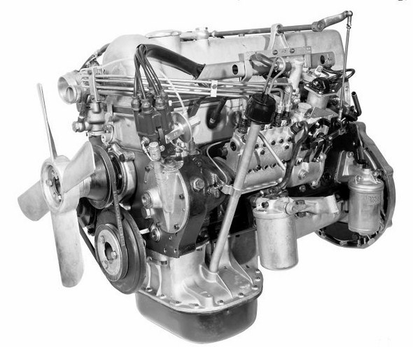 The 1.9-litre petrol engine, on the other hand, was an entirely new development. This four-cylinder unit had an overhead camshaft and is regarded as the forefather of an entire family of engines. In the Mercedes-Benz 190 SL it delivered 105 bhp (77 kW) and accelerated the fabric-topped variant from 0 to 100 km/h in 14.5 seconds on its way to its top speed of 170 km/h.