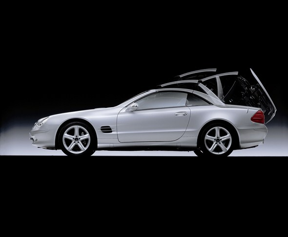Unlike its predecessors the R 230-series SL always carries its hardtop with it. The integration of the SL’s steel vario-roof into the car’s flowing lines is proof of the car’s high design quality.