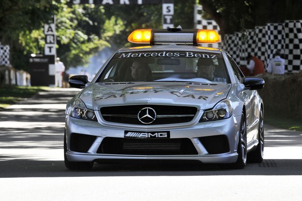 In 2008 and 2009, the SL 63 AMG Roadster went into action as Official F1™ Safety Car in Formula 1 racing. The SL, modified for operation on the racetrack, brought to mind the roots of the SL family in motor racing.