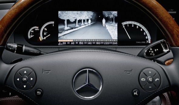 Like the S-Class the new generation of the CL additionally gets the Adaptive Highbeam Assist. Moreover, Mercedes-Benz now also offers Night View Assist Plus for the luxury coupé with a special infrared camera for pedestrian detection. The images supplied by the windscreen camera are also used by the new, optional Speed Limit Assist, which recognises speed limit signs in passing and shows the relevant speed limit in the central display and on the navigation system’s map display (standard for the CL 600).